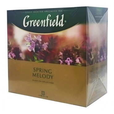 Чай "Greenfield" Spring Melody 40 пакетов в картонной упаковке.Чёрный индийский чай с душистыми травами и фруктовым ароматом. Приятная терпкость, присущая дорогим сортам индийского чая, пряный оттенок..