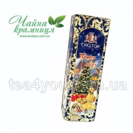 Черный крупнолистовой новогодний чай Челтон Chelton без добавок в жестяной подарочной банке в виде шкатулки.